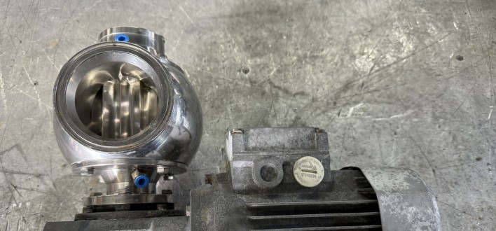 Dmn Doseersluis DN80 tri-clampConnection : Triclamp ISO 2852Material body and end covers : stainless steel 316L (DIN1.4404) / gepolijst Ra 0,8Shaft sealing : PTFE lipseals (met luchtspoeling)rotor speed (rpm): 19motor drive : 0,12 KW.5,5 L/omw bij 100% gevuld2 stuks beschikbaar.